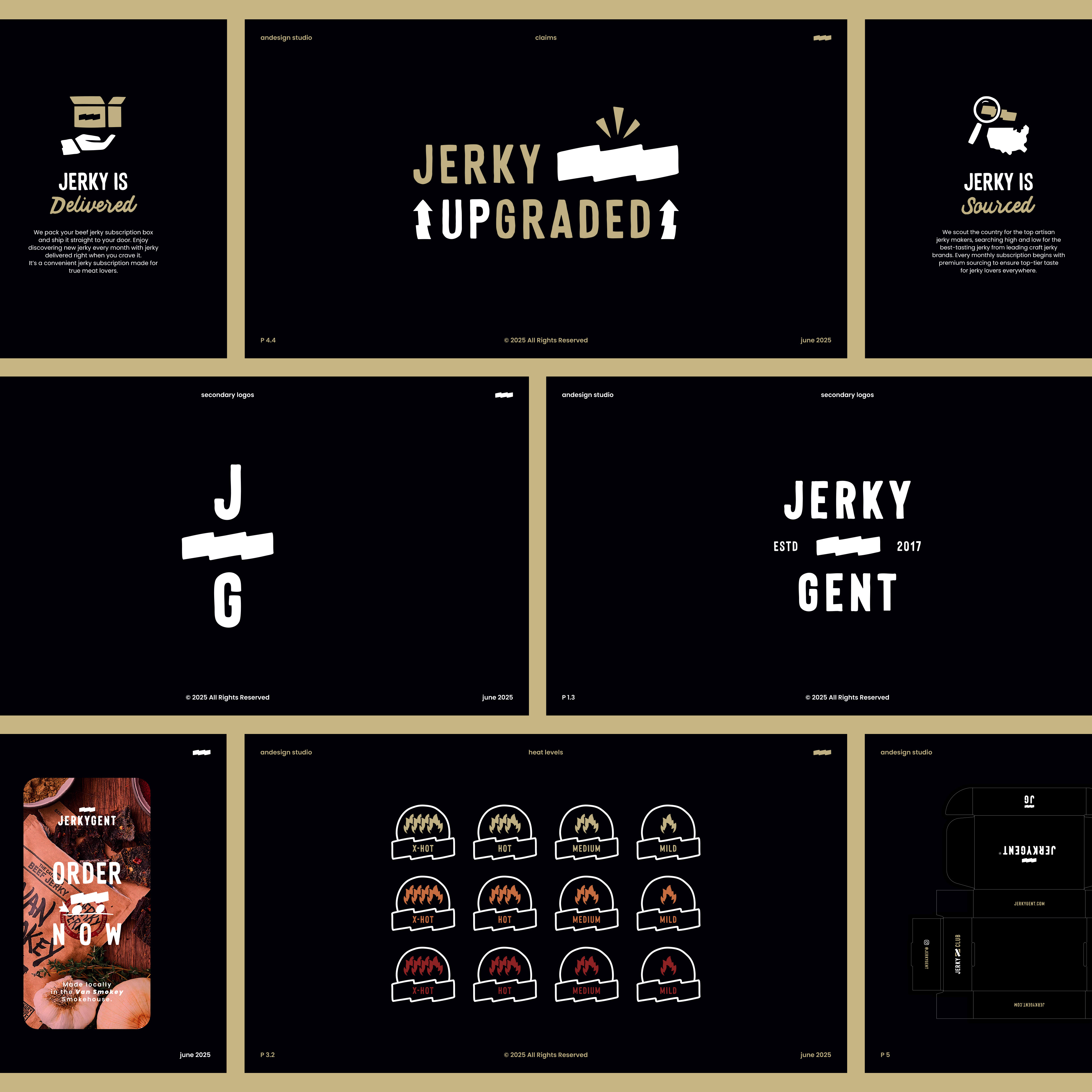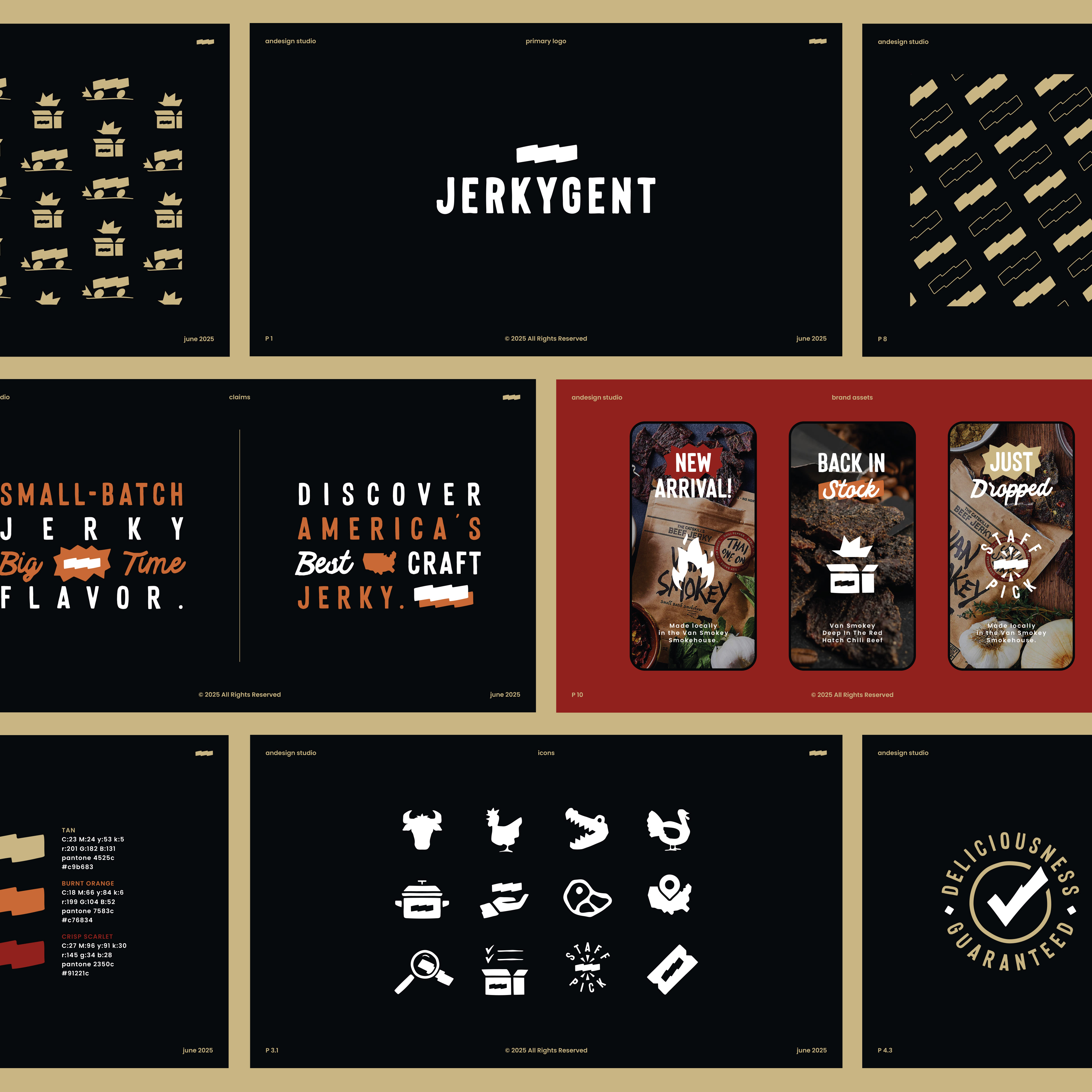 Andesign partnered with JerkyGent to design their new brand identity. JerkyGent new branding is bold and confident; the new design enhances trust, improves conversions, and aligns with the high-quality product selection of the brand. Premium yet approachable, the new look balances expert curation with excitement, to attract both gift buyers and jerky enthusiasts.